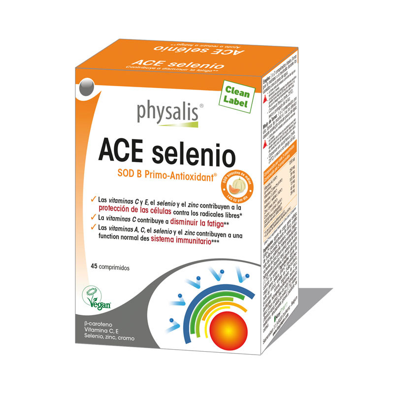 Physalis Ace Selenio fornece as vitaminas c , e , bem como selênio e zinco < /Forte>, vitaminas e minerais essenciais devido à sua contribuição para a proteção celular contra os radicais livres. A vitamina A (do beta-caroteno natural), contribui, como vitamina C, zinco e selênio, para o funcionamento adequado do sistema imunológico . A vitamina C, na forma patenteada de ester-c®, sem ácido, assimilável e ativa ao longo do tempo, contribui para reduzir a fadiga.