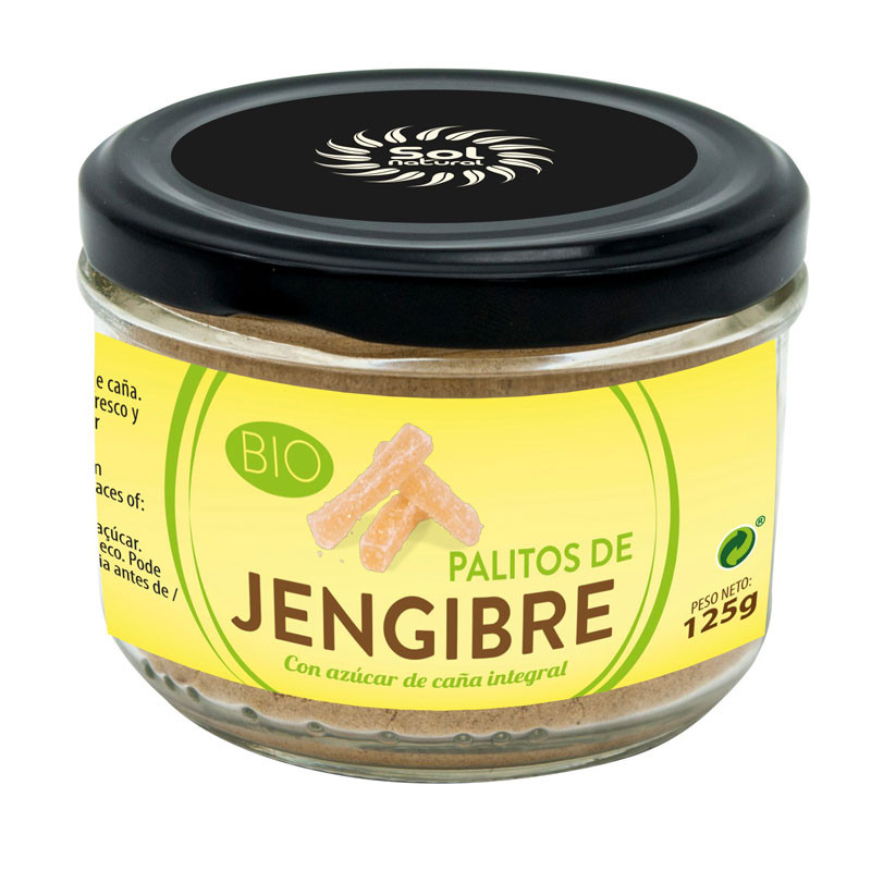 Ingredientes: *gengibre,*açúcar de cana. *da agricultura biológica. Informações nutricionais: Valor energético 283KCAL/1203KJ Carboidratos 72 g dos quais açúcares 70 g Gorduras 10 g dos quais saturou 3 g Proteínas 0 g Fibra 1,5 g sódio 17 mg