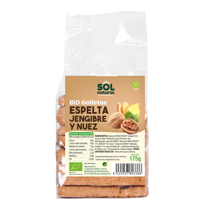 Biscoitos de soletra com gengibre e nozes bio 175g Sun Natural