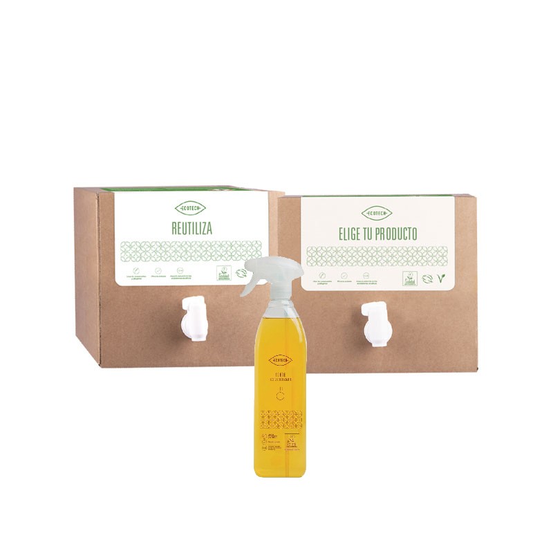 Ecotech Forte é um produto ecológico de dentro de sua fórmula para a parte externa de sua embalagem. O peso/utilidade do quociente do recipiente é um requisito ambiental que ajusta a quantidade de recipiente de plástico ao conteúdo e dose do limpador. A redução de resíduos é garantida dessa maneira no final de seu uso.