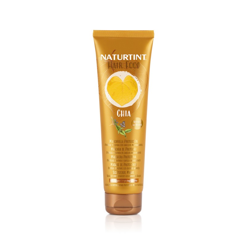 Máscara de alimentos para cabelo com chia, superalimento rico em proteínas (até 20%) e aminoácidos essenciais, fundamental para o crescimento saudável do cabelo. protege as fibras capilares de danos oxidativos gerados pela radiação solar, criando um filme de proteção que evita a perda de proteínas causada pela radiação UV. É enriquecido com proteínas Karité Butter, Baobab e Cardo Mariano, para cabelos intensamente nutridos, macios e cheios de brilho.