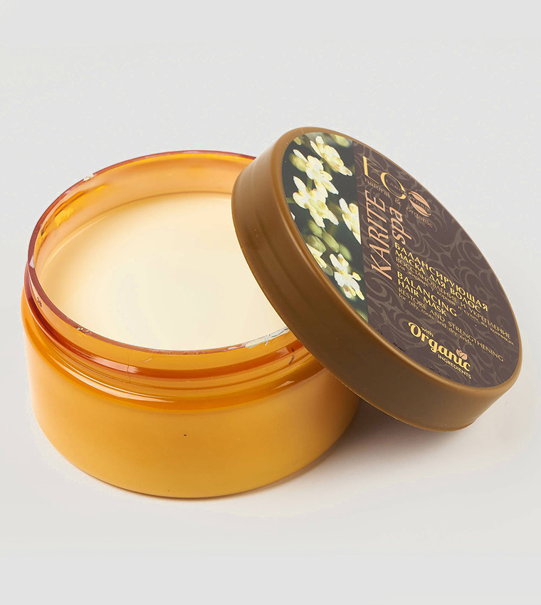 Linha Shea Spa . Máscara capilar que equilibra e fortalece o cabelo. Regenera e preserva a humidade. Não normaliza os processos das glândulas sebáceas do cabelo oleoso. Previne a queda de cabelo. Rico em ácidos gordos e vitaminas E, F, A, D. Base de manteiga de karité com extrato de sálvia orgânico. Livre de parabenos e silicones. Produto 98%25 de origem natural. 200 ml