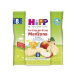 lanche ecológico de crianças de panquecas de arroz adoçadas com xarope de maçã concentrado. Este aperitivo de infância é feito de arroz ecológico inflado e também contém concentrado de suco de maçã ecológico. Panquecas de arroz com Hipp Apple têm um sabor frutado e sua forma redonda e pequena é ideal para o bebê se sentir livre ao comê -las. Eles são ideais para transportar a bolsa do bebê em qualquer lugar.