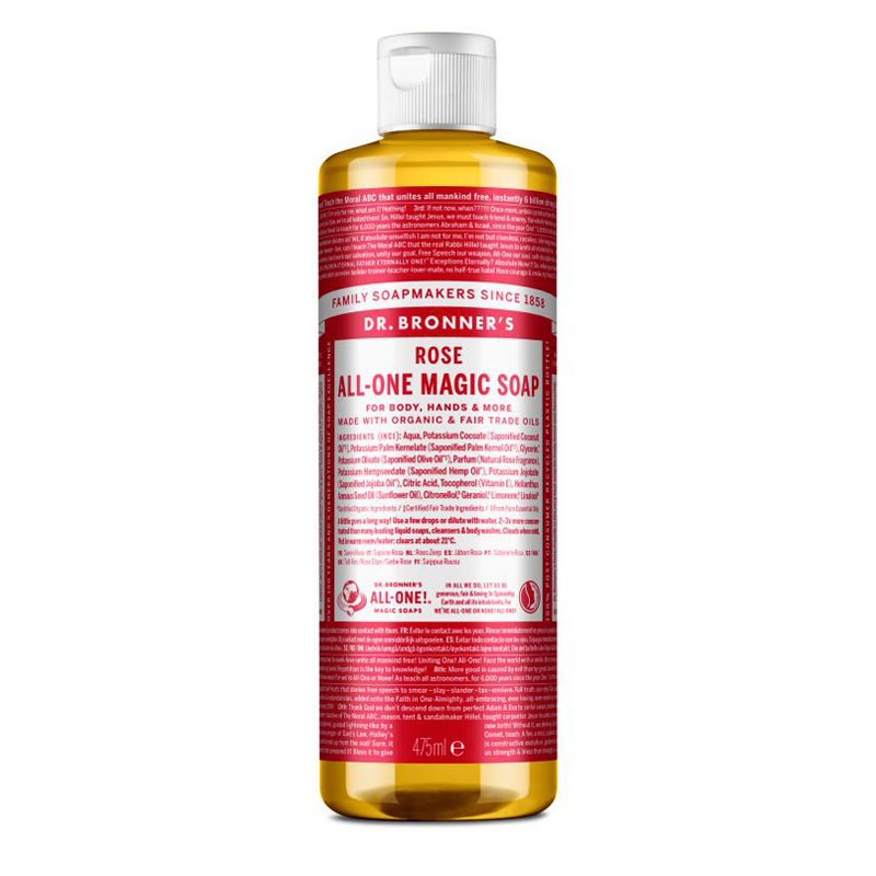 completamente biodegradável e produzido com produtos vegetais, os sabonetes líquidos de Castilla Dr. Bronner são conhecidos como Navalha de Limpeza Suíça: qualquer tarefa de limpeza pode ser usada para . Esses sabonetes simples, ecológicos e macios servem para lavar o corpo, o rosto e o cabelo; Mas eles também podem ser perfeitamente usados como lava -louças, amigável, detergente para roupas e até para o controle de pragas (para a composição dos óleos essenciais). Cada tarefa de limpeza possui uma solução de sabão ideal.