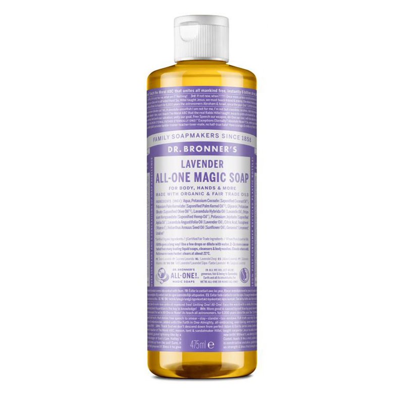 completamente biodegradável e produzido com produtos vegetais, os sabonetes líquidos de Castilla Dr. Bronner são conhecidos como Navalha de Limpeza Suíça: qualquer tarefa de limpeza pode ser usada para . Esses sabonetes simples, ecológicos e macios servem para lavar o corpo, o rosto e o cabelo; Mas eles também podem ser perfeitamente usados como lava -louças, amigável, detergente para roupas e até para o controle de pragas (para a composição dos óleos essenciais). Cada tarefa de limpeza possui uma solução de sabão ideal.